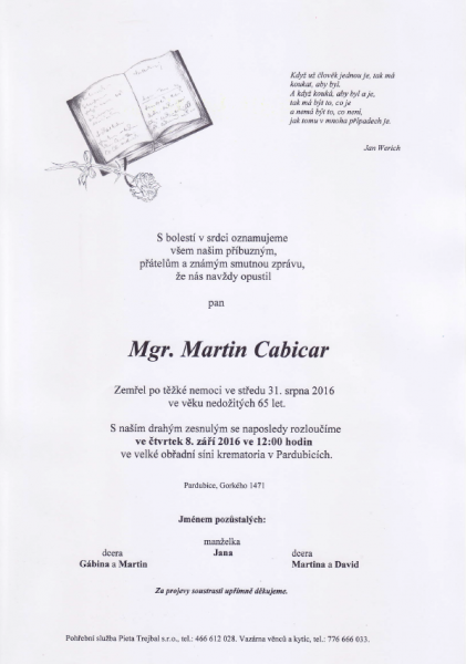 Úvod > INFORMACE O KLUBU > Opustil nás Mgr. Martin Cabicar