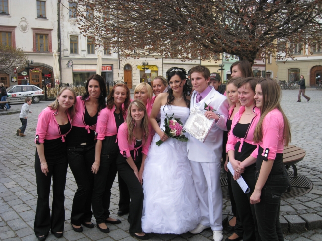 Na tento významný den nezapomněli ani některé členky krasobruslařského oddílu KK Pardubice a přišly Kátě na nové cestě popřát hodně zdraví, štestí a spokojenosti a současně předaly novomanželům svatební dárky a blahopřání.