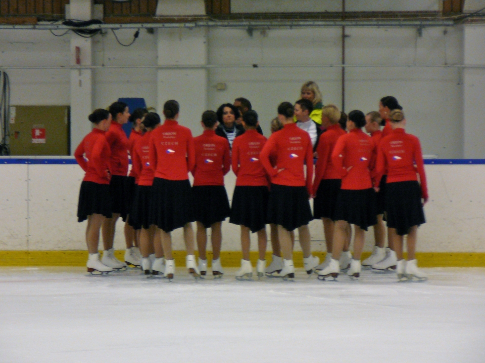 Dopolední trénink se konal v hlavní hale v klidném duchu. Led byl přemrzlý a pěkně se štípal, ale dokázali jsme si s tím poradit a projeli jsme si celý krátký program po částech. Následovalo první shlédnutí konkurenčních týmů – koukali jsme se na ruský tým Paradise. Kolem jedné hodiny odpolední jsme šli na oběd do hotelu, na kterém jsme si pochutnali a následoval hodinový odpolední odpočinek. Poté opět následoval odpolední kolotoč – rozcvička a šup na zimák do tréninkové haly, kde byla na řadě volná jízda.