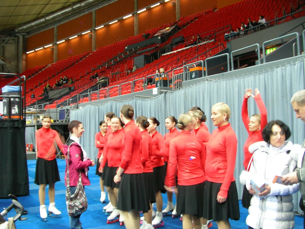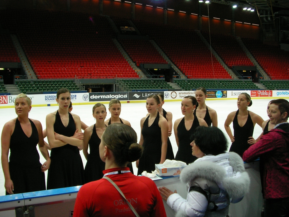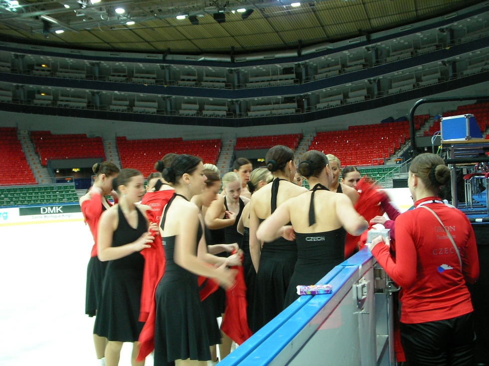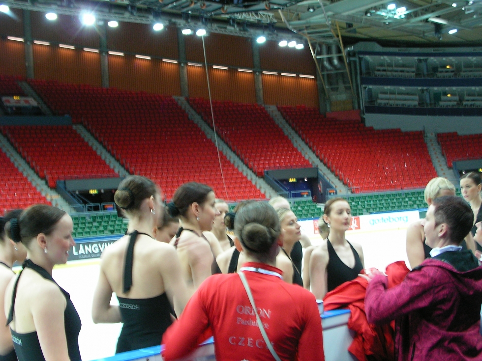 "Samotný odlet z Ruzyně a přílet včetně nutné registrace v Göteborgu proběhlo bez významných a větších problémů. Následně tým absolvoval první dva tréninky z celkem 4 neoficiálních a 2 oficiálních, které mají k dispozici před samotnou soutěží. O tom, jaké je to bruslit na hlavní ploše arény Scandinavium si měly možnost děvčata také již vyzkoušet. Další 2 neoficiální tréninky čekají pardubické krasobruslařky již zítra a večer od 19:30 hod začíná oficiální slavnostní zahájení Mistrovství světa v SSB 2012, na které se děvčata velmi těší".