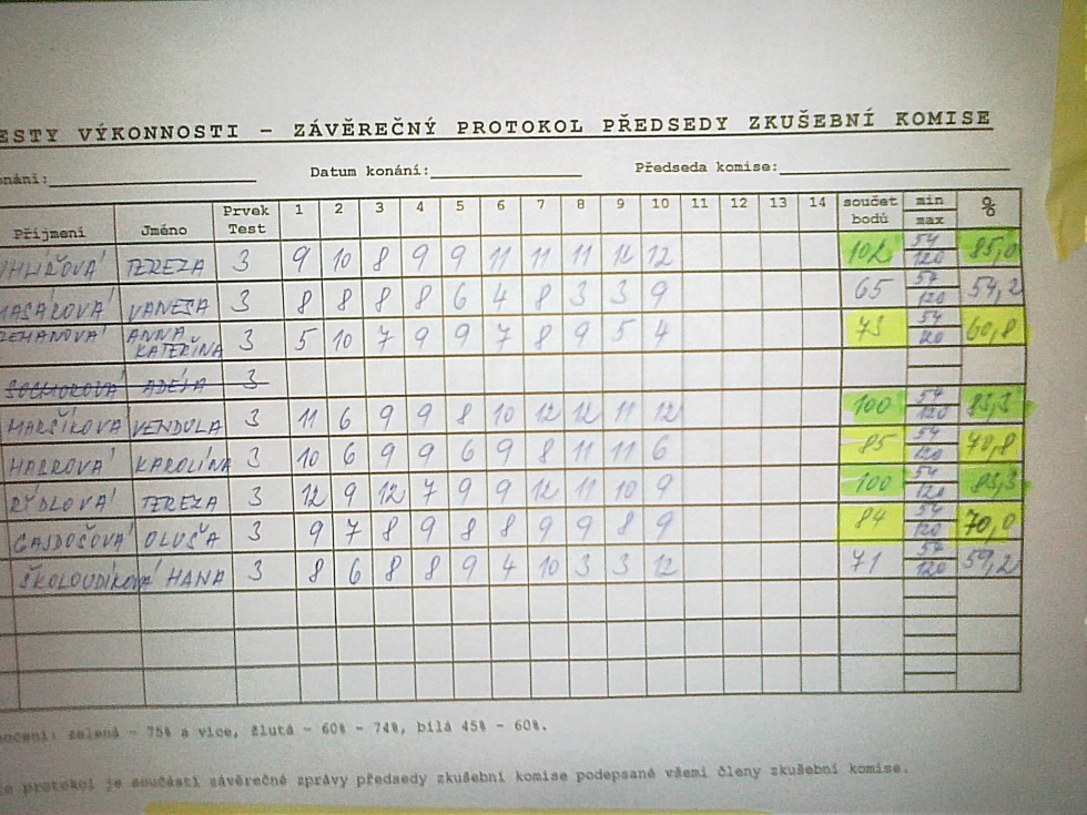 Jako první absolvovaly svůj test č. 1 sestry Nicol a Monika Zyklovy společně s Michaelou Heřmanovou a Denisou Kadlecovou. A i když to byly jejich první testy, vůbec to na sobě nedaly znát a absolvovaly test č. 1 všechny pardubické závodnice. O tom, že na test č. 2 jsou Michaela Heřmanová s Denisou Kadlecovou připravené také je doloženo i výsledkovou listinou, protože i zde figurují jejich jména mezi absolventky testu č. 2.
