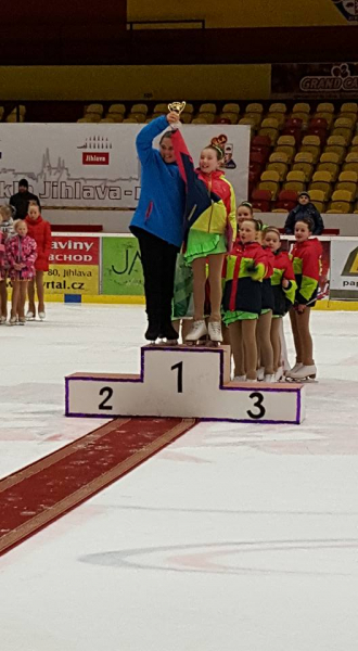 Skupina Polárky pod vedením Kristýny Hloucalové a Barbory Lahůčké získaly po velmi pěkně zajeté volné jízdě první místo v kategorii Junivele s náskokem o 2,61 bodu před skupinou Pážata z BK Příbram. V kategorii startovalo celkem pět skupin.