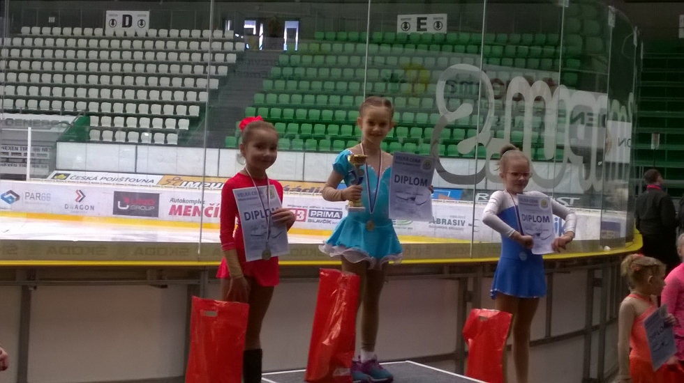 O minulém víkendu se celkem šest závodnic a jeden závodník se zúčatnilo závodů Velké ceny USK Praha 2015 v Českém poháru (systém ISU). Nejvíce se dařilo v kategorii žaček Nikole Rychtaříkové, která obsadila 1.místo. Velmi pěkné 2.místo v kategorii juniorek obsadila Karolína Melicharová po velkém boji s Dahyun Ko, za kterou zaostala pouze o 1,53 bodu. Dalším pěkným umístěním potěšila Natálie Málková, která v kategorii nejmladší žačky obsadila konečné 3.místo. V kategorii mladší žáci odsadil stříbrnou pozici Adam Špatenka.